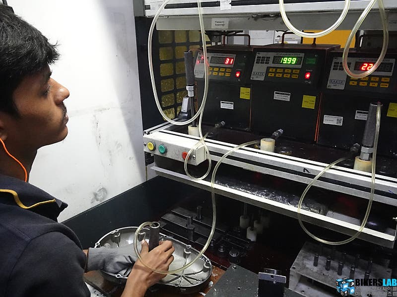 엔진 케이스를 제작하는 라인부터 견학에 나섰다. 직원은 절삭 머신을 가동해 케이스를 가다듬었고 케이스 제원에 대한 수치를 기계를 통해 확인한다. 디테일한 마무리와 검수는 직접 했다. 100% 자동화를 추구하기 보다는 기계와 사람의 협업이 이루어지는 모습이다. 1차적으로 해당 업무를 맡고 있는 직원이 검수를 하면 시니어 매니저가 2차적으로 확인을 한 뒤에야 다음 작업으로 넘어갈 수 있다. 시니어 매니저는 실수한 직원을 찾아내는 감시자의 역할이 아니라 전반적인 제작 시스템상에서의 오류를 짚어내고 이를 바로잡는 업무를 하고 있었다. 모든 작업과 검수는 체크리스트에 기록됐고 한치의 오차 없이 이루어졌다.