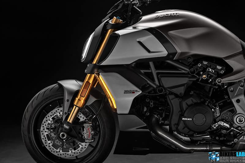 고사양인 디아벨1260S는 기본형에 장착한 전자장비는 물론 LED DRL을 비롯해 DMS(Ducati Multimedia System)과 DQS(Ducati Quick Shift Up & Down)에보 등이 기본사양이다. 또한 전/후륜 모두 올린즈 서스펜션을 탑재하고, 프론트 브레이크 캘리퍼도 보다 높은사양인 브렘보 M50 모노블록을 적용했다.