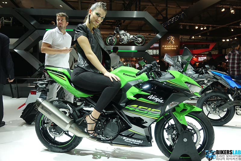 닌자 시리즈는 쿼터급인 닌자400을 추가했다. 닌자400은 닌자300보다 볼륨과 각을 키워 돌격적인 외모를 갖는다. 399cc 수랭식 병렬 2기통 엔진은, 10,000rpm에서 44마력의 최고출력과 8,000rpm에서 3.9kg*m의 최대토크를 발휘한다. 닌자300보다 성능이 향상된 것은 물론 부드러운 특성과 중저속 영역에서의 풍부한 토크특성을 확보했다.