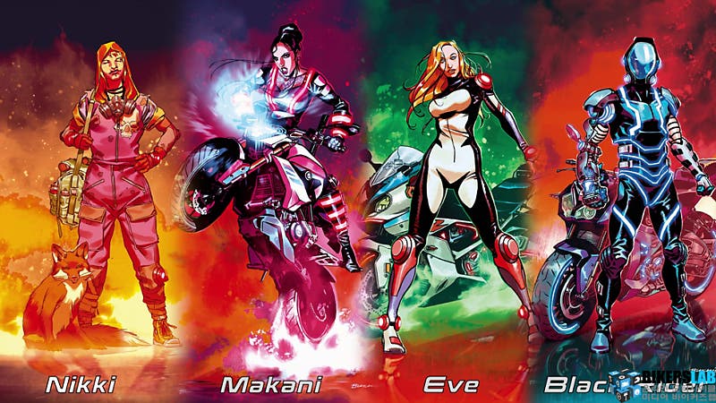 영웅은 이브 랭거홀즈(Eve Langerholz, 이하 이브), 마카니 테러(Makani Terror, 이하 마카니), 니키 아니마(Nikki Animah, 이하 니키), 블랙 라이더(Black Rider)다. 열혈 레이서인 이브는 슈퍼스포츠인 S1000RR을 타고 등장하며, 마카니는 경량 로드스터인 G310R을 탄다. 또한 마카니는 실제 타투 모델인 마카니 테러를 재현한 캐릭터로, 강렬한 인상과 전신에 두른 타투를 인상 깊게 표현했다. 니키는 짐승으로 변신하는 능력을 갖고 있으며, 블랙 라이더는 스포츠 네이키드인 S1000R을 애마로 사용하는 등 캐릭터마다의 개성이 뚜렷하다.