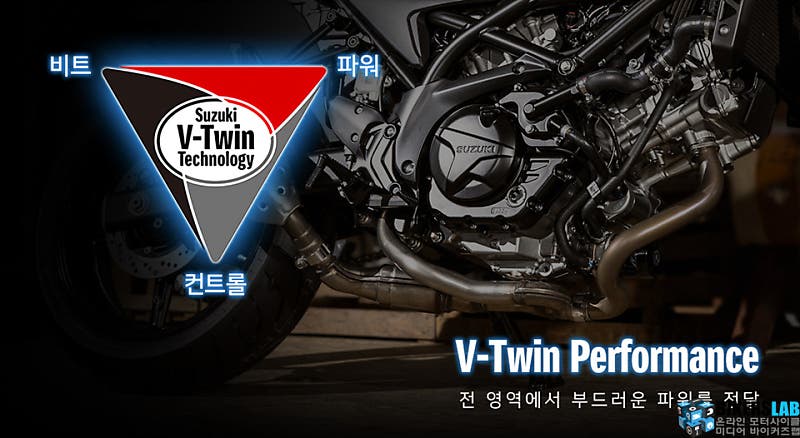 SV 시리즈가 탑재한 645cc 수랭식 90º V 트윈 엔진은 20년이 넘는 기간 동안 개선과 진화를 거듭하며 우수한 성능과 내구성을 확보했다. 중저속 영역에서의 풍부한 토크, 고속 영역에서의 우수한 성능, 그리고 특유의 고동감이 매력적인 엔진이다. 스즈키의 독자적인 특수도금(SCEM) 기술로 내구성을 높였으며, 특히 2021년식 부터는 듀얼 스로틀 밸브 및 듀얼 스파크 기술을 적용해 유로5 환경규제 기준을 충족하는 진화를 이뤄냈다.