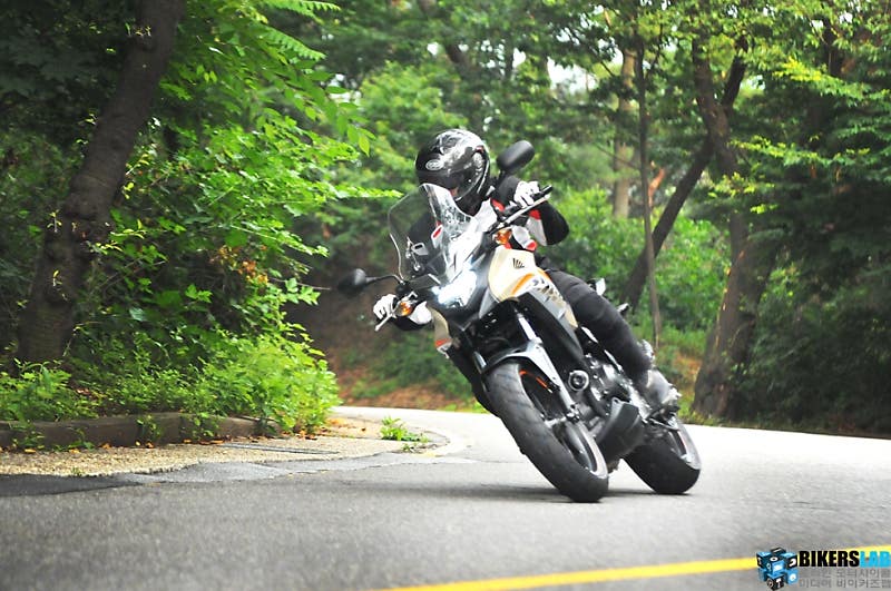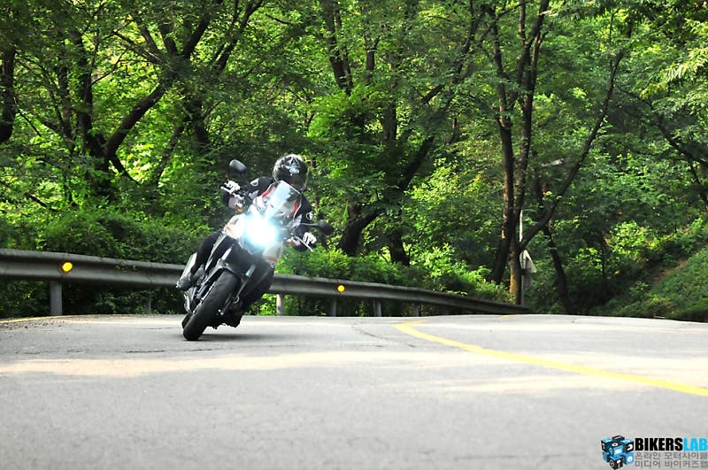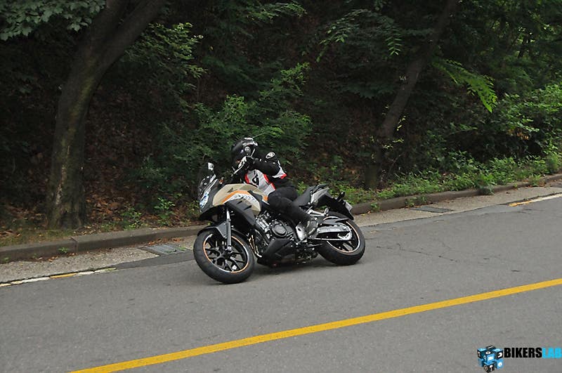 와인딩 로드에서도 핸들링이 부드러워 차체 거동이 자연스럽고 기울이는 동작이 쉽게 이뤄진다. 온/오프로드를 고려한 서스펜션은 긴 트래블을 갖췄으며, 노면을 적당히 읽어내고 걸러주기에 장시간 주행에도 피로가 적다. 코너링에서는 다소 물렁한 감각일 수 있지만, 수용할 수 있는 라이딩 포지션의 범위가 넓은 덕분에 위화감이 들지 않는다. 이와 함께 민감하면서도 까칠하지 않은 엔진 리스폰스로 고갯길에서 부담 없이 스로틀을 열고 빠져나올 수 있다.
