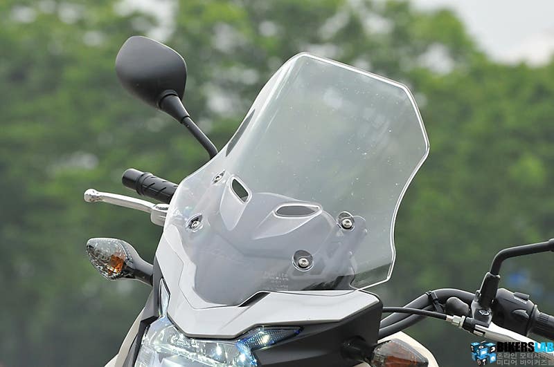 적당한 높이에 위치한 핸들바가 고속 크루징에서도 편안한 라이딩 포지션을 유지시켜 준다. 더욱이 10cm 높아진 윈드쉴드로 방풍성을 더욱 높였다. 기존의 짤막한 윈드쉴드도 어느 정도의 바람을 흘려 보내 줬지만, 투어링의 성격이 내포된 장르 특성상 더욱 보강된 방풍 성능은 장시간의 투어링에 쾌적한 주행을 돕는다.