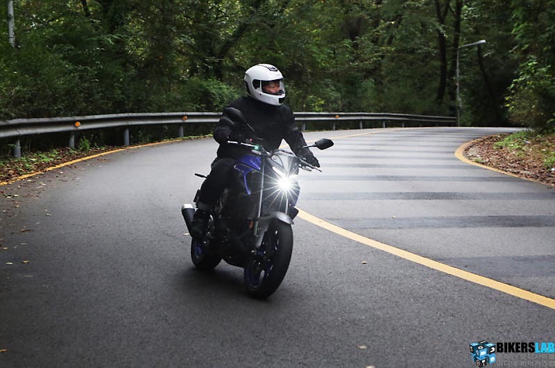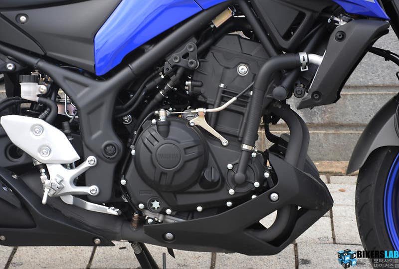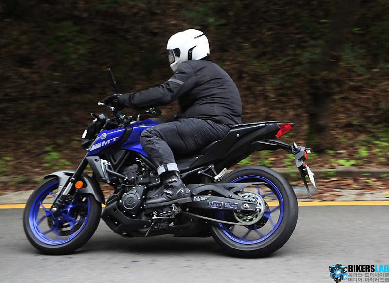 최대토크가 발생하는 9,000rpm까지 일정하게 상승하는 토크특성 덕분에 편안한 주행이 가능하다. 저회전 영역부터 적당한 토크가 발휘돼서 출발과 가속이 편하고 고단 기어에서 재 가속을 실시해도 168kg 차체를 이끌기에 충분한 토크를 분출한다. MT-03의 주 무대인 도심에서 가다 서기를 반복해도 큰 스트레스가 없는 이유다. MT-03이 가진 콤팩트한 차체, 폭이 좁은 핸들바, 짧은 휠베이스 등은 도심의 정체를 관통하기에 최적화된 설정이다.