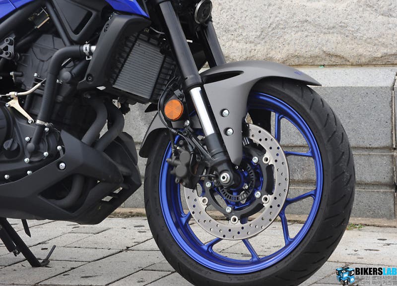 잘 달리는 것만큼 제동력도 중요하다. MT-03은 출력 대비 부족함 없는 브레이크 성능을 갖췄다. MT-03의 출력 자체가 고배기량에 비해 높지 않은 편이고 엔진 브레이크를 다소 강하게 사용해도 부담이 적기 때문에 충분한 제동력을 확보할 수 있다. 브레이크 레버로 전해지는 응답성도 기존 대비 개선된 모습을 보인다. 여기에 2채널 ABS를 결합해 안정적인 제동이 가능하다.