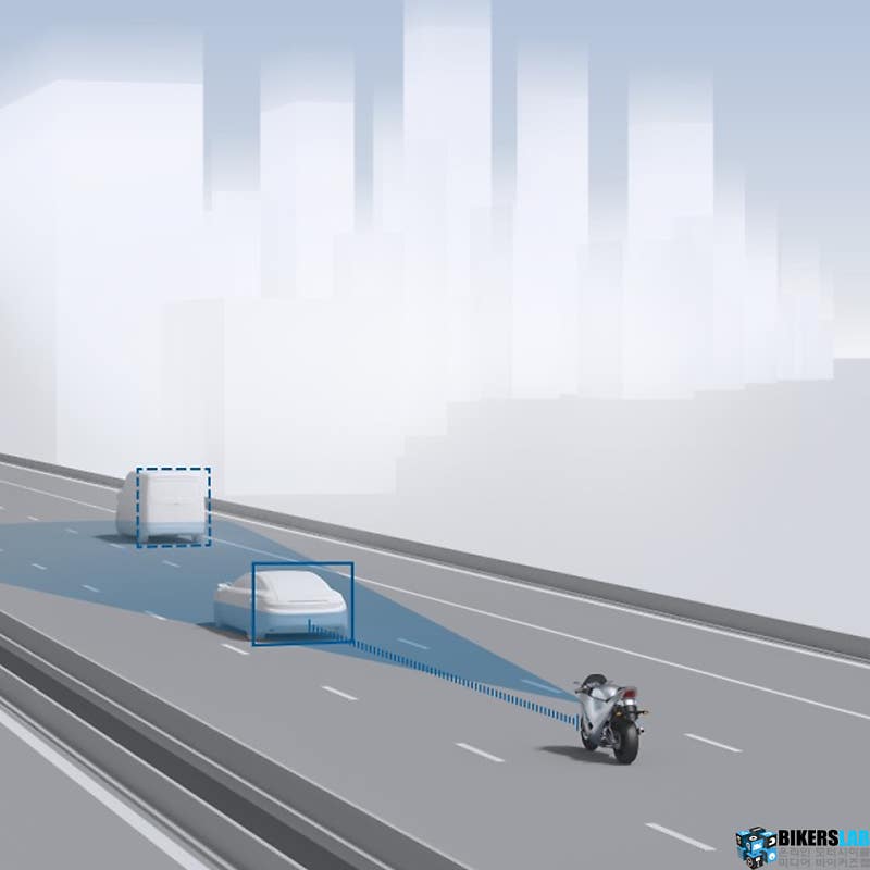 대표적인 라이딩 보조 기능인 어댑티브 크루즈 컨트롤은 모터사이클의 주행 속도와 전방 차량과의 거리를 자동으로 유지한다. 전방 차량과의 거리와 모터사이클의 주행 속도는 단계별로 설정이 가능하다. ECU는 레이더 센서가 수집한 정보를 분석하고, 모터사이클의 가/감속, 제동 등을 자동으로 조절해 안전거리를 유지한다. 이 밖에도 사각지대 감지(Blind Spot Detection), 전방 추돌 경고(Forward Collision Warning) 등 레이더 센서를 활용한 다양한 라이딩 보조 기능이 존재한다.
