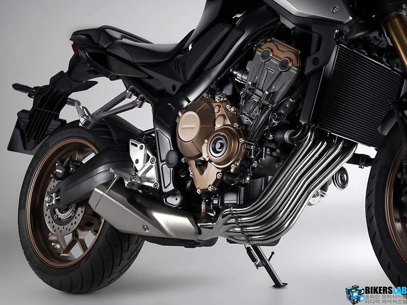 엔진은 649cc 직렬 4기통을 탑재해 94마력(12,000rpm)의 최고출력과 6.5kg*m(8,500rpm)의 최대토크를 발휘한다. 흡/배기 시스템 및 피스톤의 디자인을 새롭게 적용하고 밸브 타이밍을 수정하는 등 엔진의 세팅을 다듬었다. 결과적으로 배기량은 CB650F와 동일하지만 최고출력이 4마력 증가했고, 최고 회전수도 상승해 4기통 엔진의 매끄러운 회전감각과 고회전 영역을 강화했다. 연료탱크 용량은 15.4L, 연비는 20.4km/L(WMTC 모드 기준)이다.