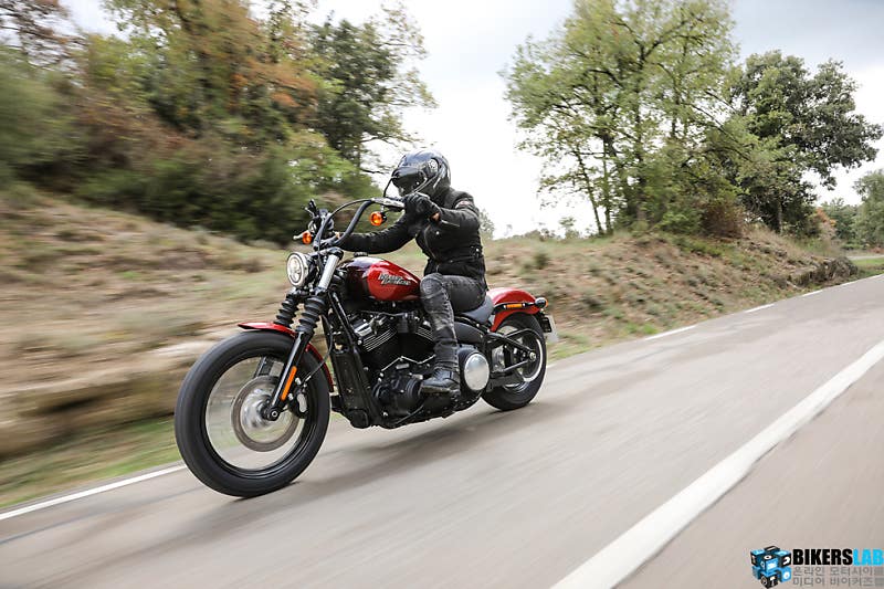 인적이 드문 와인딩에 접어들자 스트리트 밥은 매끄럽고 가볍게 움직인다. 직선도로에서 크루징을 즐길 때와 달리 시프트 다운을 통해 적절한 기어 단수와 회전수를 찾아 코너로 진입한다. 스트리트 밥은 가뿐하게 누워주며 라인을 쉽게 따라갔다. 서스펜션의 유연한 움직임과 경쾌한 핸들링 반응은 뚝뚝 끊어지는 느낌 없이 연속된 코너를 따라 안정적인 궤적을 그리게 도왔다. 스트리트 밥의 매력은 직선도로보다도 굽이진 길에서 드러났고, 커스텀 바버 스타일의 크루저가 발휘할 수 있는 스포티함을 아낌없이 발휘했다. 오버리터급 배기량임에도 버겁지 않은 크기와 섀시 설정이 어느 곳에서든 107엔진을 활용할 수 있게 했다. 스트리트 밥은 더욱 매력적인 외모를 얻었고, 다이나의 운동신경은 잃지 않았다.