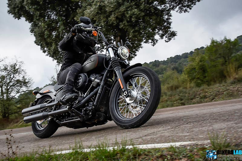 밀워키에이트107(이하,107엔진)을 탑재한 스트리트 밥은 3,000rpm에서 14.8kg*m의 최대토크를 발휘한다. 이전 세대보다 전장이 짧아지고 무게는 7kg을 감량한 덕에 차체가 보다 콤팩트해졌지만, 가랑이 사이에는 더욱 커다란 1,745cc V트윈이 자리한다. 두 개의 피스톤이 굵고 마른 기침 소리를 토해내며 아이들링 상태를 유지해도, 두 개의 밸런서로 진동을 억제한 덕에 불쾌하지 않은 여운만 맴돈다. 우측으로 뻗은 두 가닥의 머플러는 기존과 달리, 하단의 배기관도 뒤쪽으로 더욱 길게 뽑아냈다.