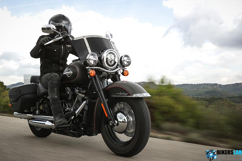 이미 스트리트 밥과 브레이크아웃으로 경험한 섀시의 반응은 헤리티지 클래식에서도 고개를 끄덕이게 한다. 굽이진 산길에서 좌우로 번갈아 기울이는 동작이 자연스럽고 쉽게 연결된다. 동시에 낮은 회전수로 툭툭 끊어 치는 엔진의 감각은 차체를 지긋이 밀어주고, 높은 회전수로 촘촘히 토크를 박아 넣을 때면 제법 경쾌함 마저 든다. 빈티지 감성이 충만한 헤리티지 클래식의 성능은 전혀 옛 것의 움직임이 아니다. 헤리티지 클래식 역시 17kg이나 감량했다. 게다가 더욱 늘어난 서스펜션 트래블과 높아진 댐핑의 한계가, 그렇게 타지 않아도 되는데 몰아붙이게 하는 재미를 준다.