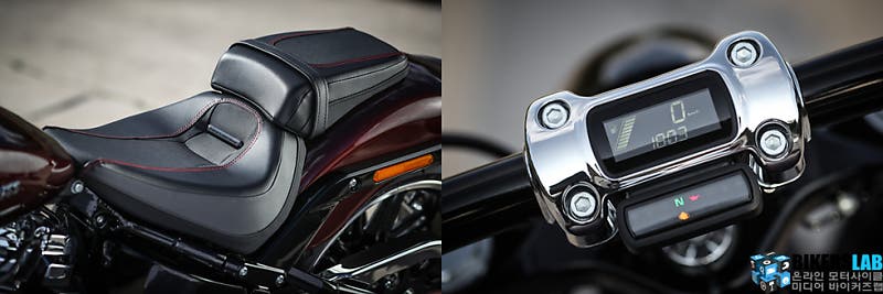 하드테일의 리어라인을 갖게 된 스트리트 밥은 이제 완연한 소프테일 시리즈다. 게다가 적당한 높이의 미니 에이프 행어 핸들바는 덩치가 작은 사람에게도 부담스럽지 않은 스타일과 편안한 상체 포지션을 선사한다. 소프테일이면서 동시에 다크커스텀 계열 중 하나인 스트리트 밥은 짙어진 블랙 컬러와 다듬어진 외관 덕에 커스텀 모터사이클의 분위기가 더욱 강해졌다. 이제는 LED 헤드라이트가 프론트의 인상을 책임진다. 새로운 리어 서스펜션은 시트를 탈거해 프리로드를 조절할 수 있다.