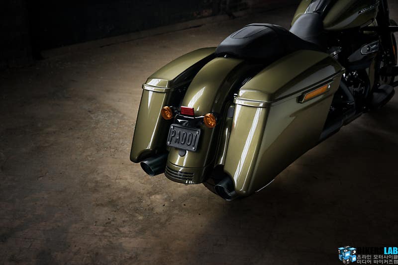 반면, 스포크를 보다 촘촘하게 적용한 전/후륜 휠은 기존 로드킹보다 사이즈를 키운 19/18인치다. 게다가 전장은 2423mm 20mm가 길어졌고, 시트 높이도 44mm가 낮아진 671mm, 사이드라인이 더욱 근사하다. 길어진 새들백과, 새들백 하단의 굴곡진 라인 밑으로 파고 들어간 머플러 등이 지면과 밀착된 리어 라인을 만들었다. 무게는 5kg을 감량했지만, 여전히 육중한 354kg이다. 동승자를 위한 발판은 간결한 디자인으로 변경했다.