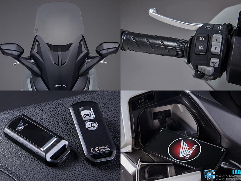 전자 장비도 강화했다. HSTC(혼다 셀렉터블 토크 컨트롤), 듀얼 채널 ABS, ESS(긴급 제동 경고 시스템) 등을 탑재해 안정적인 주행을 보조한다. 충전 소켓은 USB 타입으로 변경했으며 HSVC(혼다 스마트폰 음성 제어) 시스템도 추가했다. HSVC는 헬멧에 장착한 블루투스, 모터사이클, 스마트폰을 연결해 통화, 음악 감상, 메시지 등을 음성으로 제어할 수 있는 기능이다. 이 밖에도 스마트키 시스템, LED 조명, 넉넉한 수납공간 등을 갖춰 편의성을 높였다.