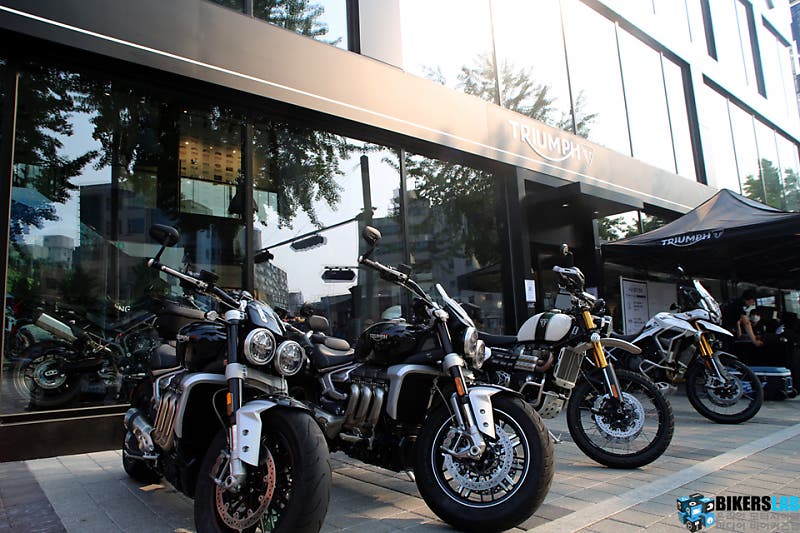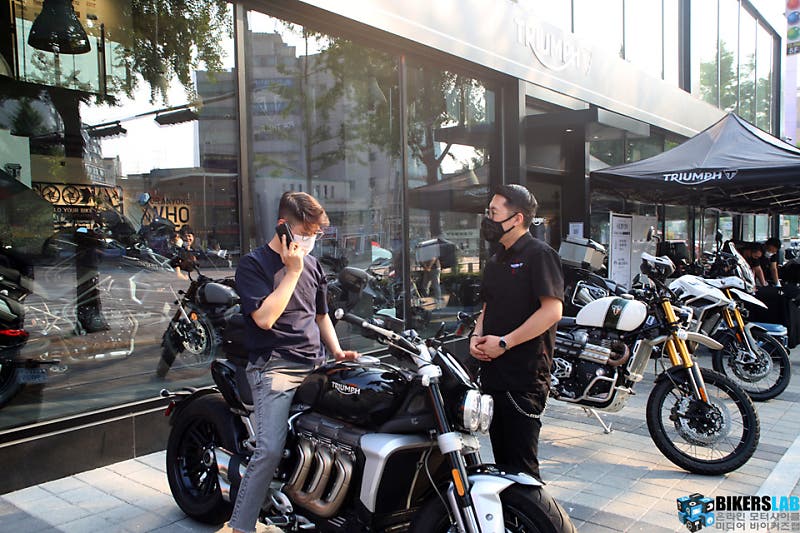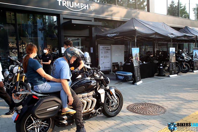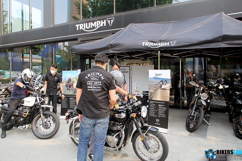 트라이엄프 코리아가 6 20일 강동점에서 로켓3 & 타이거900의 시승회를 실시했다. 이번 시승회는 로켓3 & 타이거900 론칭 기념이라는 타이틀이 붙었지만 트라이엄프 라인업의 14개 기종(로켓3 R & GT, 타이거900 GT & 랠리, 타이거1200 XCA, 본네빌T100, 스피드 트윈, 스크램블러1200 XE & XC, 타이거800 XCA & XRX, 스트리트 스크램블러, 스피드 트리플, 스트리트 트리플)을 한자리에 마련해 평소에 눈여겨보던 기종은 모두 시승해 볼 수 있는 자리였다. 시승은 예약을 한 고객은 신청한 시간에 맞춰 시승에 임했고 예약을 하지 않은 고객은 현장에서 신청을 한 후 시승을 진행했다. 단 시승은 면허증을 지참한 고객에 한해서 진행했기에 면허증을 미처 챙기지 못한 방문객은 아쉬움을 삼키기도 했다.