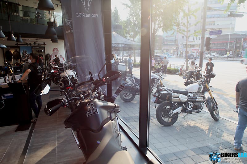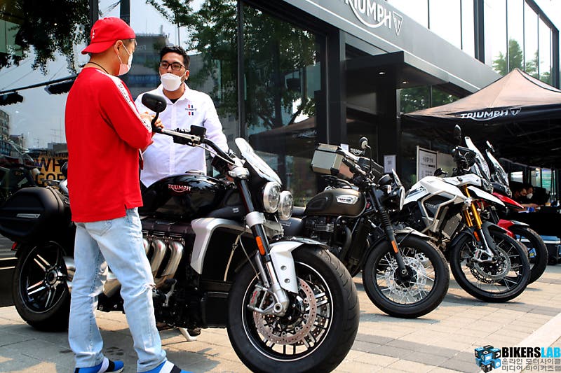 시승을 진행한 강동 트라이엄프 플래그십 스토어는 천호대로상에 위치해 있다. 시승 코스로 설정한 상일 IC로 향하는 길은 왕복 8차선 도로로 교통량이 적고 직진 위주여서 각 모터사이클의 성능을 체험해보기에 적합했다. 또한 강동 전시장은 경기 동부나 강원도 등지로 투어를 떠나는 길목에 위치해 투어를 떠나기 전 시승을 해보려 하는 이들로 이른 오전부터 문전성시를 이뤘다. 참가자들에게는 최대 30분까지 시승 시간이 주어졌다. 안전에도 만전을 기했다. 방문한 모든 고객은 발열 체크와 소독을 실시했고 시승에 임하기 전에는 진행 스태프들이 유의사항, 조작법, 시승 코스 등을 1:1로 설명해 안전사고에 대비했다.