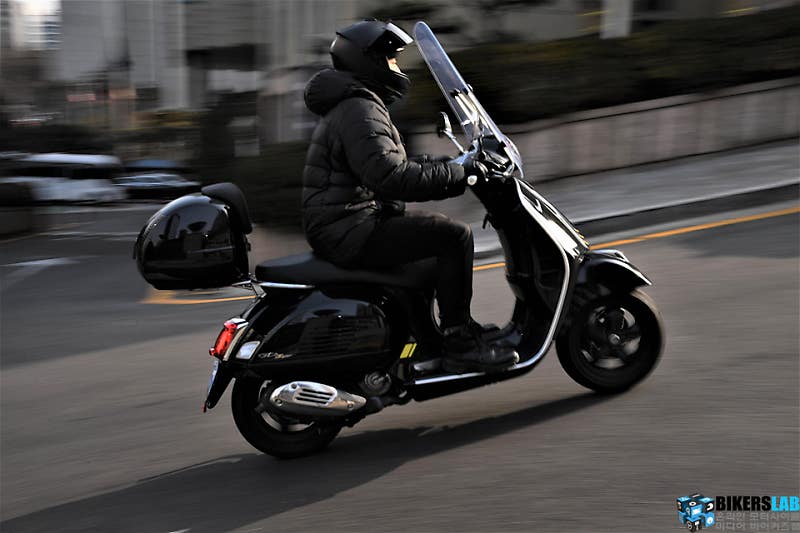 시승차를 받고 첫 주행에서 느낀 점은 쾌적함과 편안함이다. GTS300 슈퍼텍에 탑재된 HPE(High Performance Engine)엔진은 이전 대비 월등한 정숙성을 보인다. 아이들링 상태에서 핸들바와 시트로 전해지는 진동이 확연히 줄어든 것을 물론이며, 스로틀 그립을 감았을 때에도 요란스럽지 않고 듬직하게 출력을 뽑아낸다.