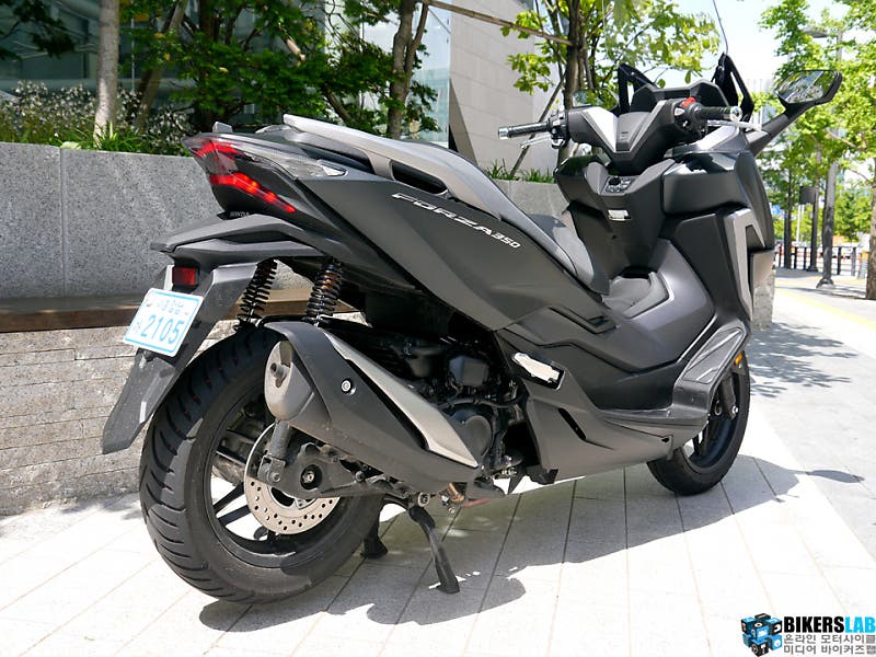 포르자 300 2018년에 풀체인지 됐다. 스마트키와 전동식 윈드 스크린을 장착한 것도, 둥글둥글했던 차체가 날렵하게 각을 세운 것도 2018년식부터다. 이후 포르자는 기다려야 살 수 있는인기 모델로 급부상했다. 하지만 다소 아쉬운 부분은 출력이었다. 포르자 300 279cc 엔진을 탑재해 25.2마력의 최고출력을 발휘했다. 포르자 350 330cc 엔진을 탑재해 29.4마력의 최고출력으로 4마력 가량 증가했다. 고작 4마력이라고 생각할 수도 있지만 그 차이는 생각보다 크다. 최고 출력이 낮으면 낮으면 수록 2~3마력의 증가도 크게 다가오기 때문이다.