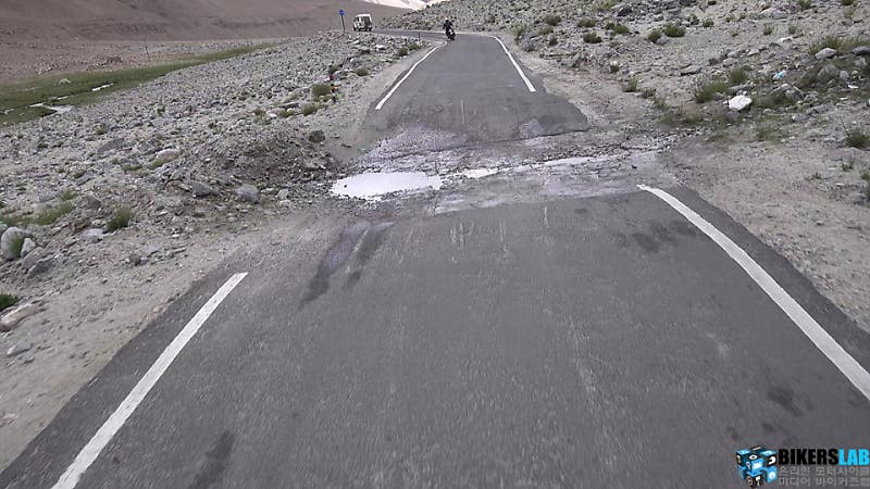 인도의 도로 사정은 깔끔하고 고르게 정비된 우리나라의 아스팔트 도로와는 확연히 다르다. 파손된 부분이 많고 흙과 요철이 많아 포장도로라고해도 긴장의 끈을 놓을 수 없다. 도로에는 U자 모양으로 움푹하게 팬 구간이 많다. 아스팔트를 도포하기 어려운 곳에 시멘트를 바른 구조였다. 크게 굴곡진 형태로 시트에 앉아서 통과하기 벅찬 정도다. 속도를 줄이지 못하고 요철을 만난 경우도 있지만 다행히 서스펜션이 제 역할을 해내면서 사고로 이어지지는 않았다. 그나마 마음 놓고 가속할 수 있었던 구간은 손으로 꼽을 정도로 적다. 물론 이런 상황은 히말라야이기 때문에 어찌 보면 당연한 일이다.
