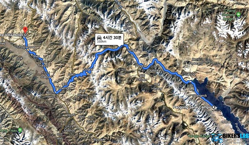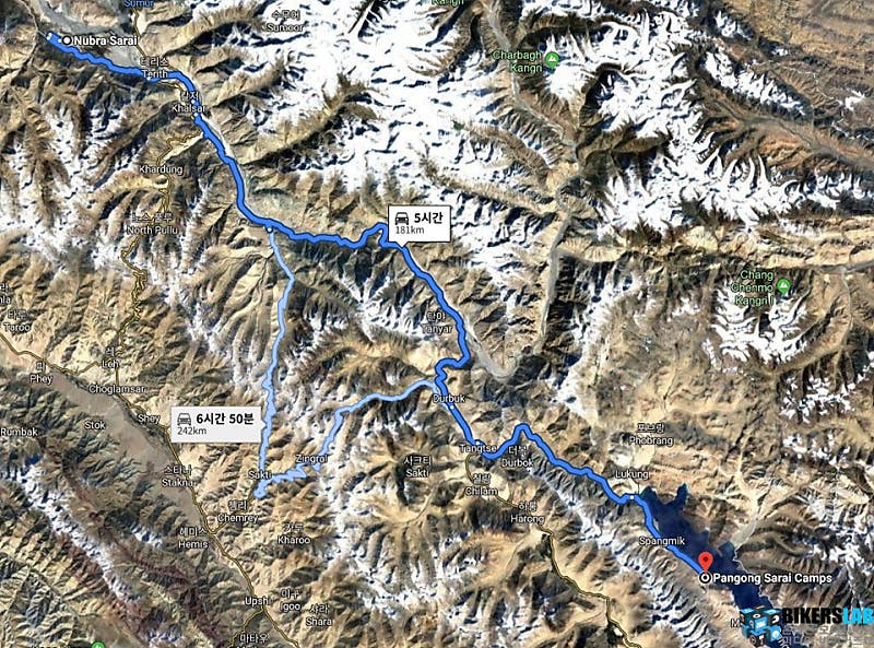 오전 7, 이른 아침부터 서둘렀다. 매일 아침은 코스 브리핑으로 시작했다. 로드 매니저는 당일 주행할 코스에서 주의해야 할 점, 다음 행선지와 도착 시간 등을 고지했다. 또한 당일 주행할 코스의 온로드와 오프로드의 비중이 각각 몇 퍼센트 정도인지도 알렸다. 로드매니저인 라힘은 누브라 밸리에서 판공초로 가는 길은 온로드가 60%, 오프로드가 40%라고 설명했지만, 막상 주행했을 때의 체감으로는 오프로드가 70% 이상처럼 느껴졌다.