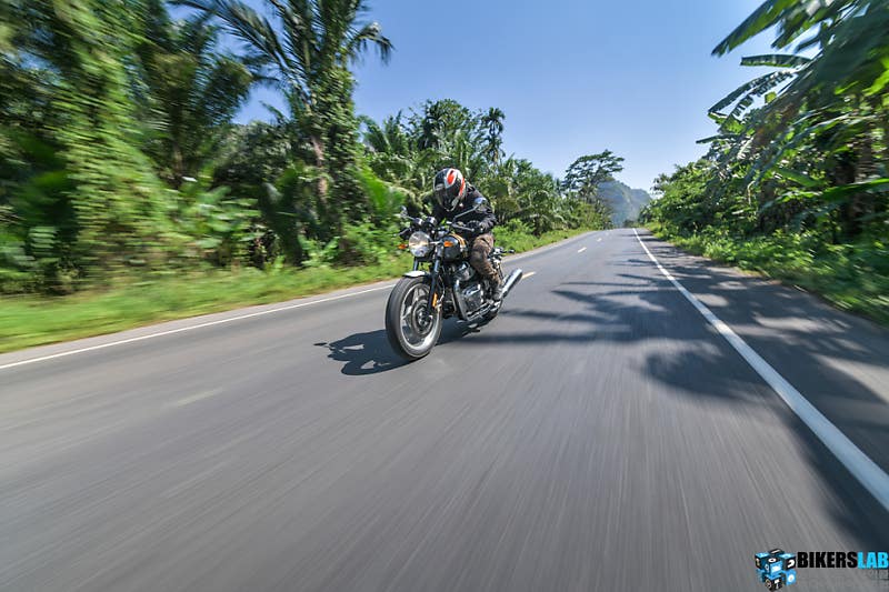 그렇다면 한계는 어떨까. 쭉 뻗은 도로 위에서 오른 손목을 있는 힘껏 비튼다. 니그립이 용이한 움푹 패인 연료탱크에 하체를 밀착하고 상체는 더욱 숙였다. 계기반의 바늘을 한계 회전수까지 밀어 넣으며 기어를 변속했다. 급진적으로 튀어나가지는 않으나 150km/h 이상까지도 활기차게 가속한다. 차체의 불안함과 허덕이는 엔진의 모습 따위는 없다. 47마력이라는 최고출력 수치는 잊은 지 오래다. 동급배기량의 수랭식 고성능 엔진과의 비교는 무의미하며, 로얄엔필드의 650 트윈 엔진은 감성적으로나 성능적으로나 나무랄 데 없다.