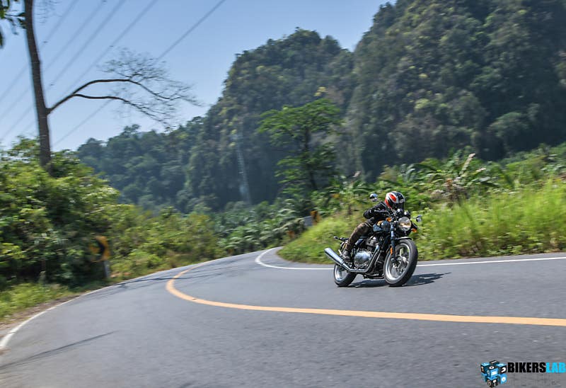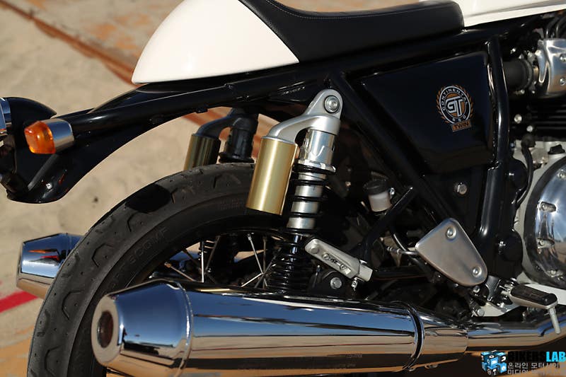 로얄엔필드가 엔진과 함께 강조한 부분 중 하나도 바로 섀시다. 이번 650 트윈 시리즈는 품질은 물론 기계적인 완성도 부분에서도 자신감을 드러냈다. 프론트 브레이크는 답력이 크지는 않으나 제동력이 충분했다. 반면 리어 브레이크는 ABS의 개입이 조금 일렀다. 서스펜션은 프론트에 41mm포크와 110mm의 트레블을, 리어에 프리로드(5단계) 조정이 가능한 더블 쇽업소버와 88mm의 트레블을 갖췄다. 섀시의 한계점이 높지는 않으나, 한계 내에서는 프레임과 서스펜션 등의 조화로 거동의 흐트러짐이 적다.