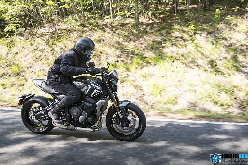 그 비결은 차체 밸런스와 지오메트리 구성에 있다. 휠은 앞뒤 모두 17인치를 적용해 민첩한 로드스터의 특성을 살렸다. 휠베이스는 1401mm로 간결하고 레이크 각은 24.6도로 프런트가 바짝 서 있는 모습이다. 스포티한 주행을 고려한 세팅 덕분인지 입력한 값 이상의 아웃풋이 없어 움직임을 제어하기 수월했다. 코너링 중에는 가벼운 차체 덕분에 눕히는 과정이 부담이 없었고 라인을 수정하기 편했다. 자신감이 붙으니 보다 과감하게 코너를 공략하고 속도를 붙일 수도 있었다. 스킬업이 필요한 중급자에게도 트라이던트는 좋은 교보재의 역할을 해줄 것이다. 이런 다루기 쉬운 특성에 가벼운 무게와 괴롭힐수록 폭발적인 엔진까지 겸비했으니 재미없기가 힘든 로드스터다.