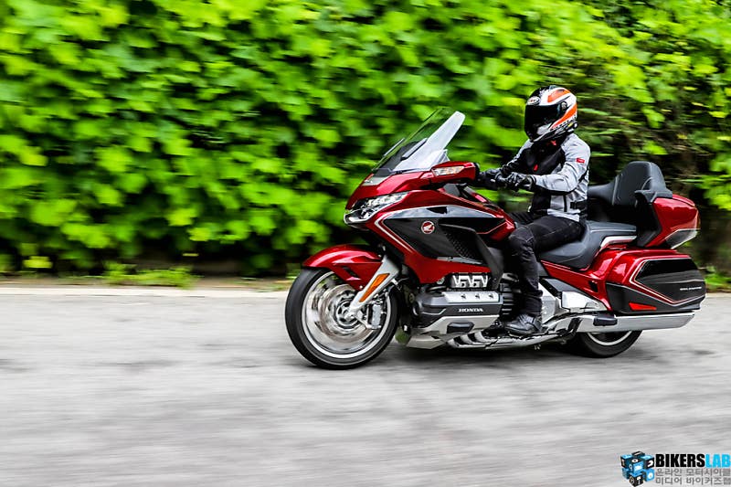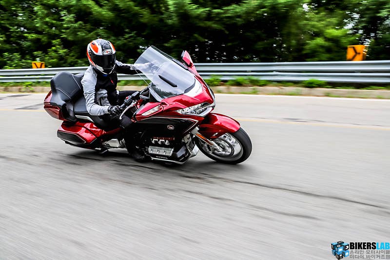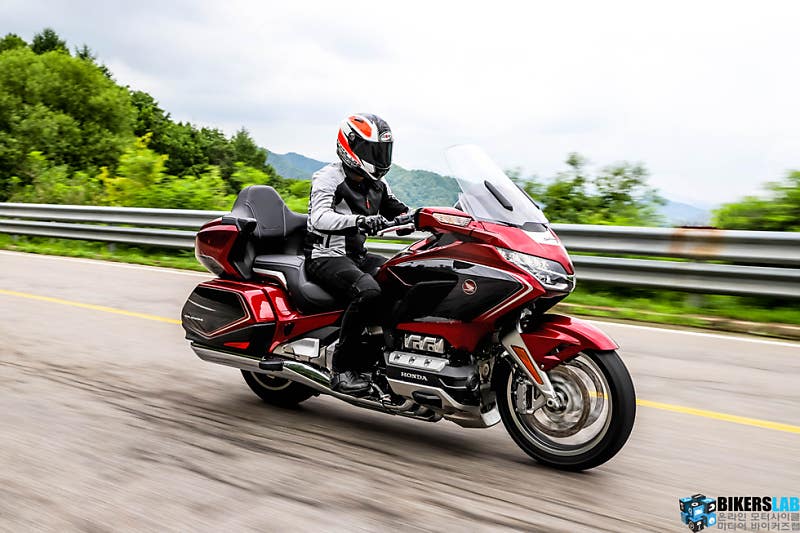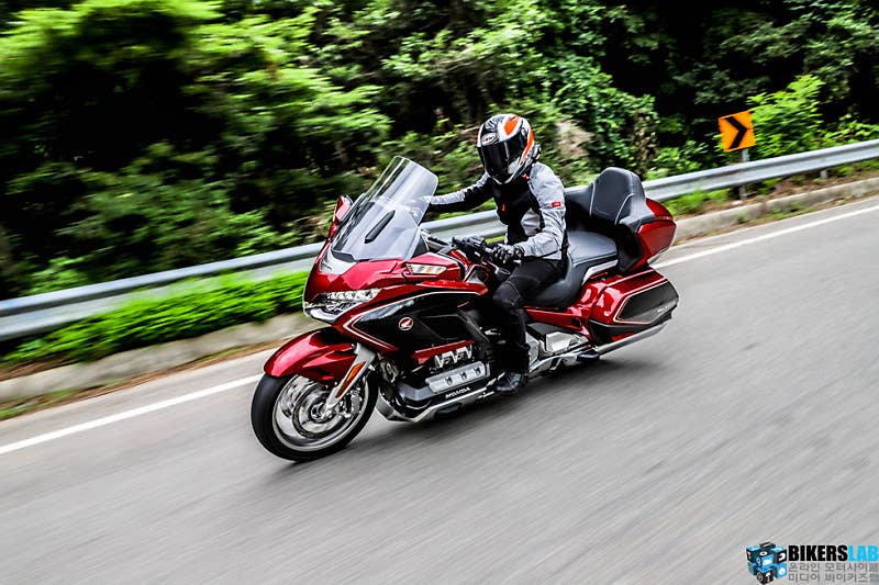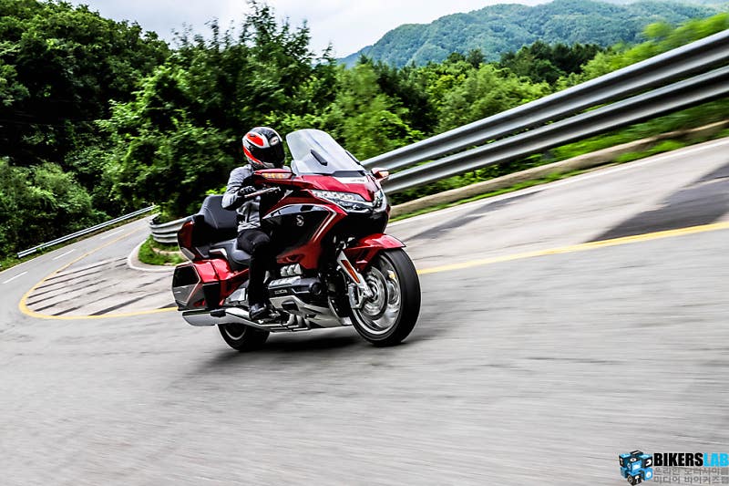 골드윙답게 투어모드가 가장 적절하다. 투어모드는 스로틀 개도에 따른 차체 반응이 매우 자연스럽다. 부드럽게 감으면 그에 맞는 투어링의 성향을 보이다가도, 가속과 추월을 위해 스로틀 그립을 힘차게 비틀면 그에 맞게 템포를 맞춰준다. 17.3kg*m의 강력한 토크를 체감하고 싶다면 스포츠 모드로 주행하면 된다. 스로틀 개도에 따라 토크 전달을 즉각적으로 느낄 수 있다. 특히 고갯길에서는 낮게 가라앉은 무게중심과 덩치에 어울리지 않을 정도의 경쾌한 핸들링이 맞물려, 크기를 실감하지 않고 스포티한 주행을 즐길 수 있다. 좌우로 연속된 코너에도 진자운동처럼 아주 자연스럽게 롤링을 이어간다. 무겁지만 무게가 느껴지지 않게, 차체가 크지만 크다고 느껴지지 않게 탈 수 있는 것이 바로 골드윙이다.