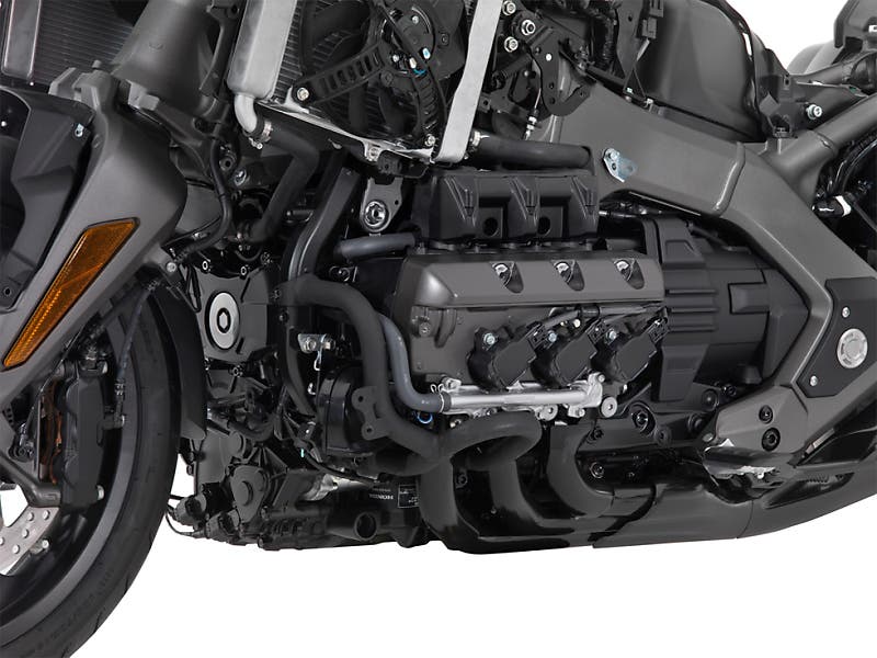 1,833cc 수평대향 6기통 엔진은 부드럽고 강력하다. 낮고 넓게 퍼지는 배기음은 고성능을 드러냄과 동시에 중후하고 위엄이 느껴진다. 엔진의 구조적 이점으로 얻은 저중심 세팅은 골드윙의 특징 중 하나. 덕분에 차체는 무거워도 다른 대배기량 투어러와 비교해 훨씬 쉽게 다룰 수 있다. 저속에서 핸들링도 매끄럽고 자연스럽다. 거대한 차체가 노면 위를 미끄러지듯 가속하는 느낌은 골드윙의 장점. 124마력의 최고출력은 5,500rpm에서, 17.3kg*m의 최대토크는 4,500rpm에서 발휘한다. 저회전부터 고회전까지 매끄러운 상승 곡선을 그리며 매 구간마다 꾸준하고 강력하게 차체를 밀어내며, 어느 곳 하나 비는 구석 없이 6개의 실린더가 촘촘하게 구동력을 채워준다.
