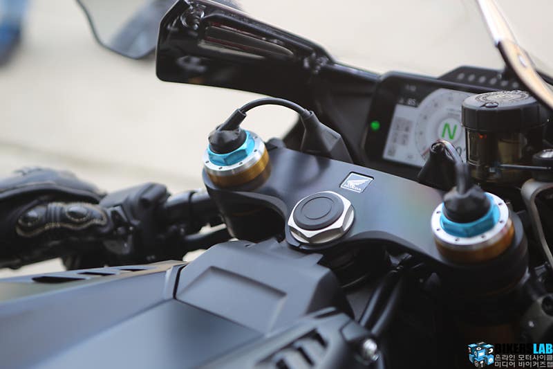 시승한 모델은 CBR1000RR-R SP이며, 이 트림에는 2세대 올린즈 스마트 EC 시스템과 전자 제어 서스펜션이 결합돼 있다. 서스펜션의 소프트웨어와 하드웨어를 동시에 업그레이드한 것이다. 43mm 올린즈 NPX 프런트 포크는 급제동이나 급가속 시에 허둥거림 없이 차체를 잘 지지해 준다는 느낌을 받았다. 금색으로 도장된 두 가닥의 포크가 마치 든든한 기둥처럼 느껴진다. OBTi(Öhlins Objective Based Tuning Interface)를 통해 전자 제어가 가능한 것도 장점이다. 주행 중에도 버튼을 통해 소프트/미디엄/하드로 즉시 세팅을 변경할 수 있다. 따라서 코너나 직선 코스에 따른 즉각적인 대처도 가능하다.