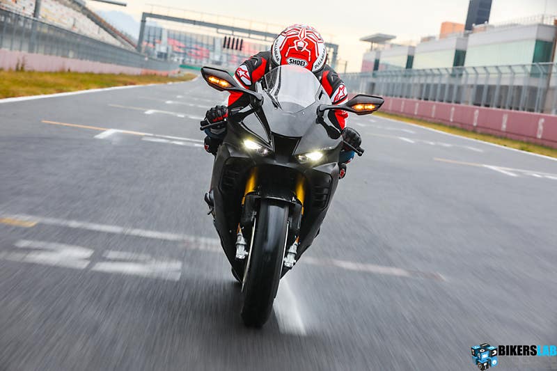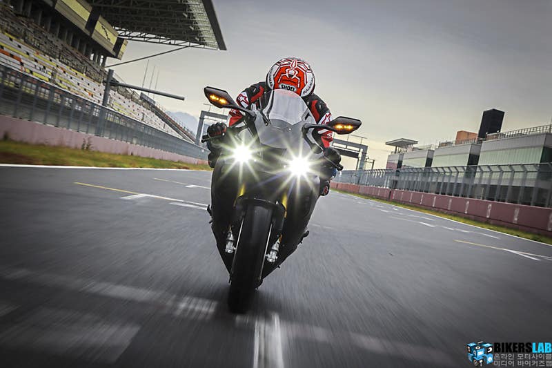 중저속 영역에서도 출력의 부족함을 느끼기 힘들지만 6,000.rpm을 넘어서면 가변 밸브가 작동하며 한 층 날카로운 배기음이 뿜어져 나온다. 14,000rpm에 도달할 때까지 출력 곡선은 떨어지지 않는다. 1단에서도 130km/h까지는 순식간에 도달한다. 이후 기어 인디케이터가 점등하며 변속 시점을 알린다. 퀵 시프트로 딜레이 없이 변속하고 3단에서 230km/h까지 단숨에 가속한다. 낮아진 연료 탱크 덕에 상체를 차체에 보다 밀착시키니 주행풍도 거의 느껴지지 않는다. 윙 렛 덕분인지 고속에서도 묵직하며 차체에 불안함이 없다. 프로 링크 방식의 올린즈 모노쇽업소버는 200mm의 리어 타이어를 지면에 꽉꽉 눌러주는 느낌이다. 날카로운 배기음, 부드럽지만 맹렬한 가속, 아드레날린이 솟구친다.