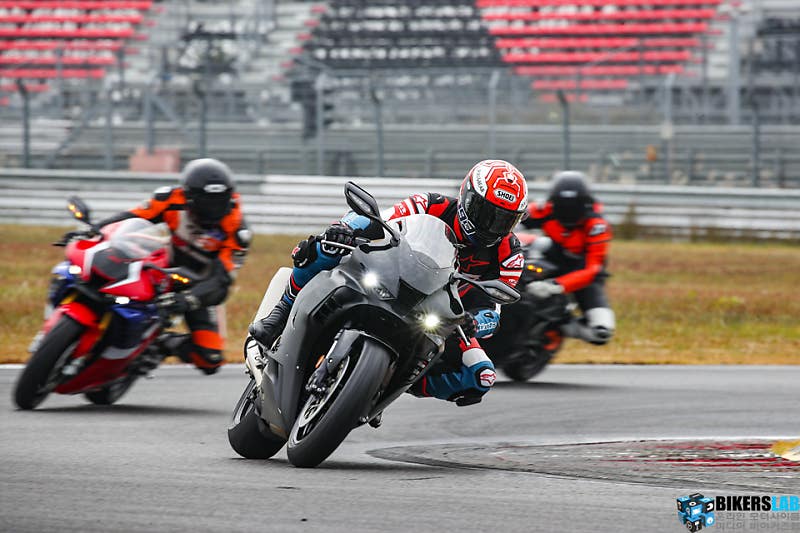 웜업 세션 동안 스로틀 응답성, 선회 특성, 노면 컨디션, 라이딩 포지션 등에 익숙해 지는 시간을 가졌다. 본격적인 테스트는 오후부터였다. 트리플R의 최고 출력은 216마력, 최대 토크는 11.5kg*m, 최고 속도는 299km/h다. 가장 먼저 알아보고 싶었던 부분 역시 이에 기인한 가속 성능이다. 마지막 코너를 돌고 직선 구간에 진입해 스로틀 그립을 과감하게 비틀었다. 윌리 컨트롤, 트랙션 컨트롤 등의 전자 장비가 활성화돼 있기 때문에 보다 자신감 있는 주행이 가능했다.