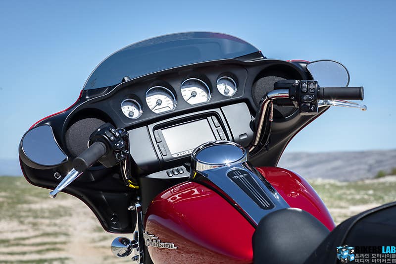 3,250rpm에서 15.3kg*m의 최대토크를 내뿜기에 각 기어 단수마다 가속이 시원하다. 손과 발에 닿는 대부분의 파츠가 한 치수 크고 거칠게 느껴져 부담스럽지만, 주행을 시작하면 이내 할리데이비슨만의 매력으로 다가온다. 라이딩은 편안하지만, V트윈의 포효는 끊임없이 전달되기에 얌전하고 매끄러운 투어러가 아니라는 점이 강하게 머릿속으로 입력된다. 이러한 투박한 감각이 넉넉하고 큼직한 설정들과 어우러져 할리데이비슨만의 맛으로 승화되는 것이다. 할리데이비슨의 투어러가 지루하지 않은 이유다.