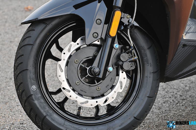 브레이크 성능은 준수하다. 프론트와 리어에 각각 260/220mm의 싱글 디스크를 장착했으며, 리어 브레이크는 프론트 브레이크와 연동되는 타입이다. 리어 브레이크 레버는 묵직하지만 잡는 즉시 곧잘 제동력을 발휘하며, 초기 제동력 또한 차체 움직임에 변화가 바로 느껴질 만큼 밀림 현상이 적다. 다만 시트가 미끄러워 엉덩이가 자꾸 앞쪽으로 빠지거나 뒤로 밀리는 것은 아쉽다.